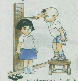 เด็กอายุมากกว่า 2 ปี การวัดเด็กให้อยู่ในท่ายืน เรียกว่า วัดความสูงหรือส่วนสูงมีวิธีการดังนี้